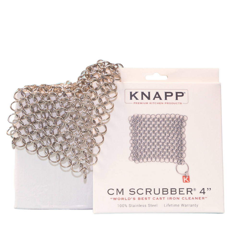 You can now safely and easily clean your cast iron cookware and other kitchenware, without removing that precious seasoning you've worked so hard to build. This is one of those completely incredible functional things that also looks amazing on the counter or hanging by your sink.