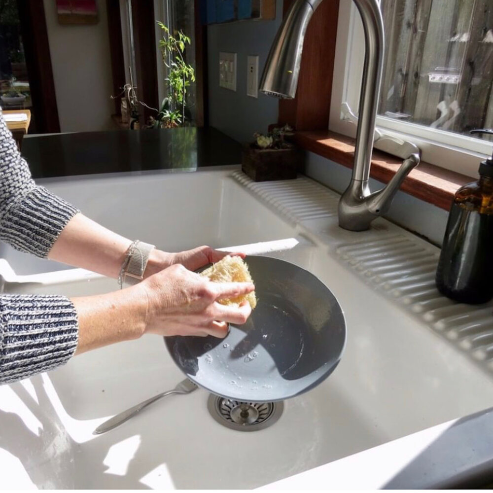For use as a dish scrub (safe on nonstick pots and pans), wet the luffa with warm water + soap and scrub away. To use on your body, wet the luffa with warm water + your favorite soap and exfoliate. We recommend that you cut your luffa in half to get two and make it last even longer.