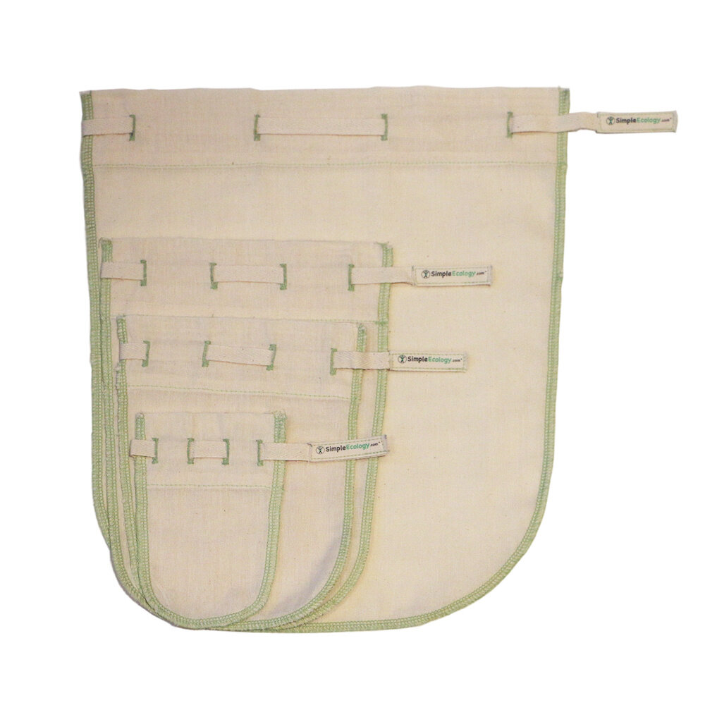 After using, just flip the straining bag inside out and rinse the contents off. You can machine or hand wash them in cold water and flat or line dry. They are made of unprocessed fabric, never washed or bleached, so they will shrink about 10% after the first wash.